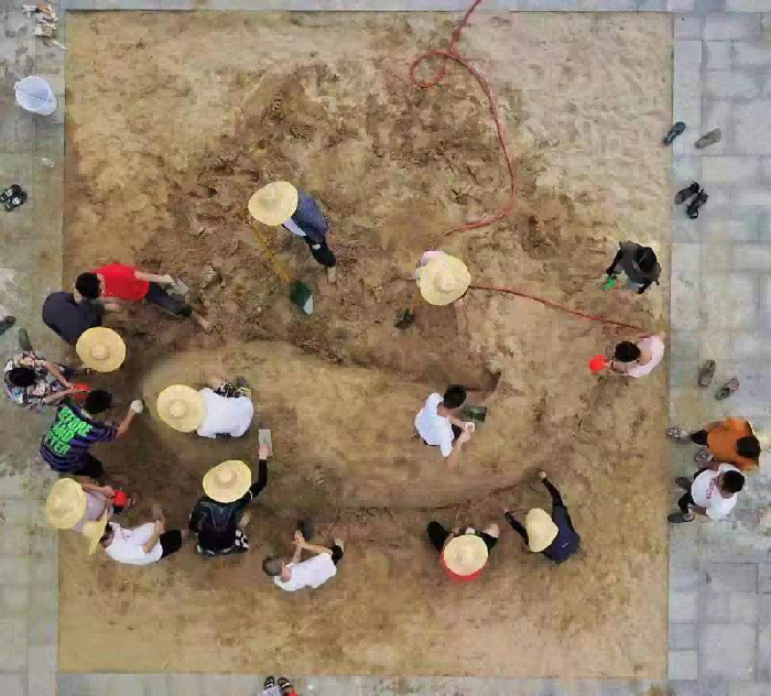 撒水夯实地基,准备创作 孔令石(摄)