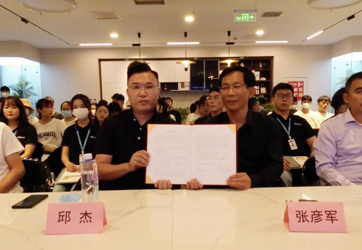 本次签约活动还进行了2022届实习结业仪式、2022届优秀学生代表发言等环节。随后,我校副校长邱杰和北京居然之家装饰工程有限公司负责人张彦军进行校企合作签约,并一起为建筑与环境艺术学院就业实习基地揭牌。