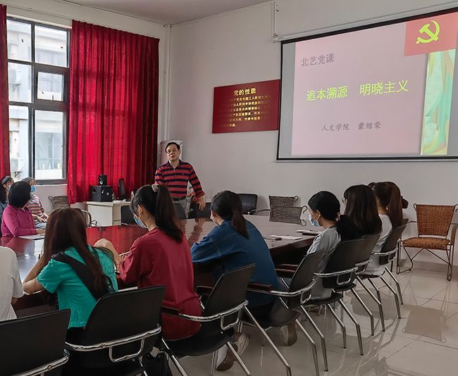 2021年3月17日上午,人文学院党支部在西校区学工楼“党员之家”开展入党积极分子党课培训。本次培训由蒙绍荣书记进行主讲,以“追本溯源,明晓主义”为主题。人文学院全体入党积极分子认真聆听蒙书记讲解,重温党史,学习党的理论。