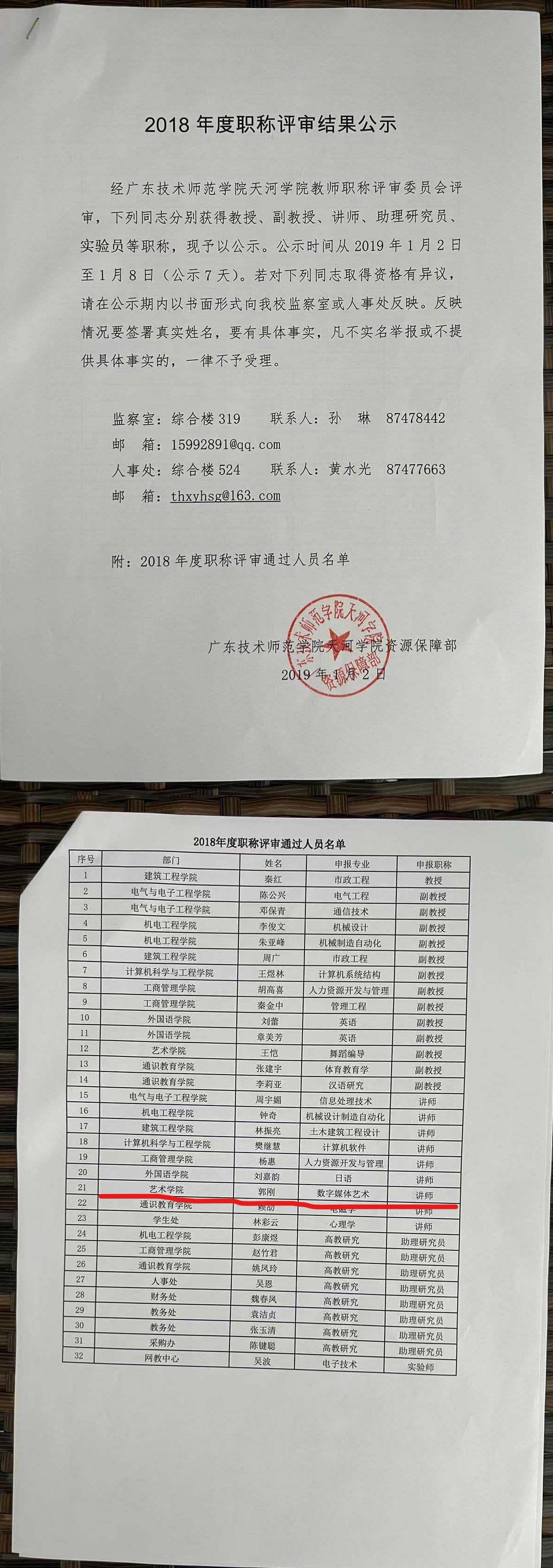 关于对郭刚同志职称重新确认申报材料进行公示的公告