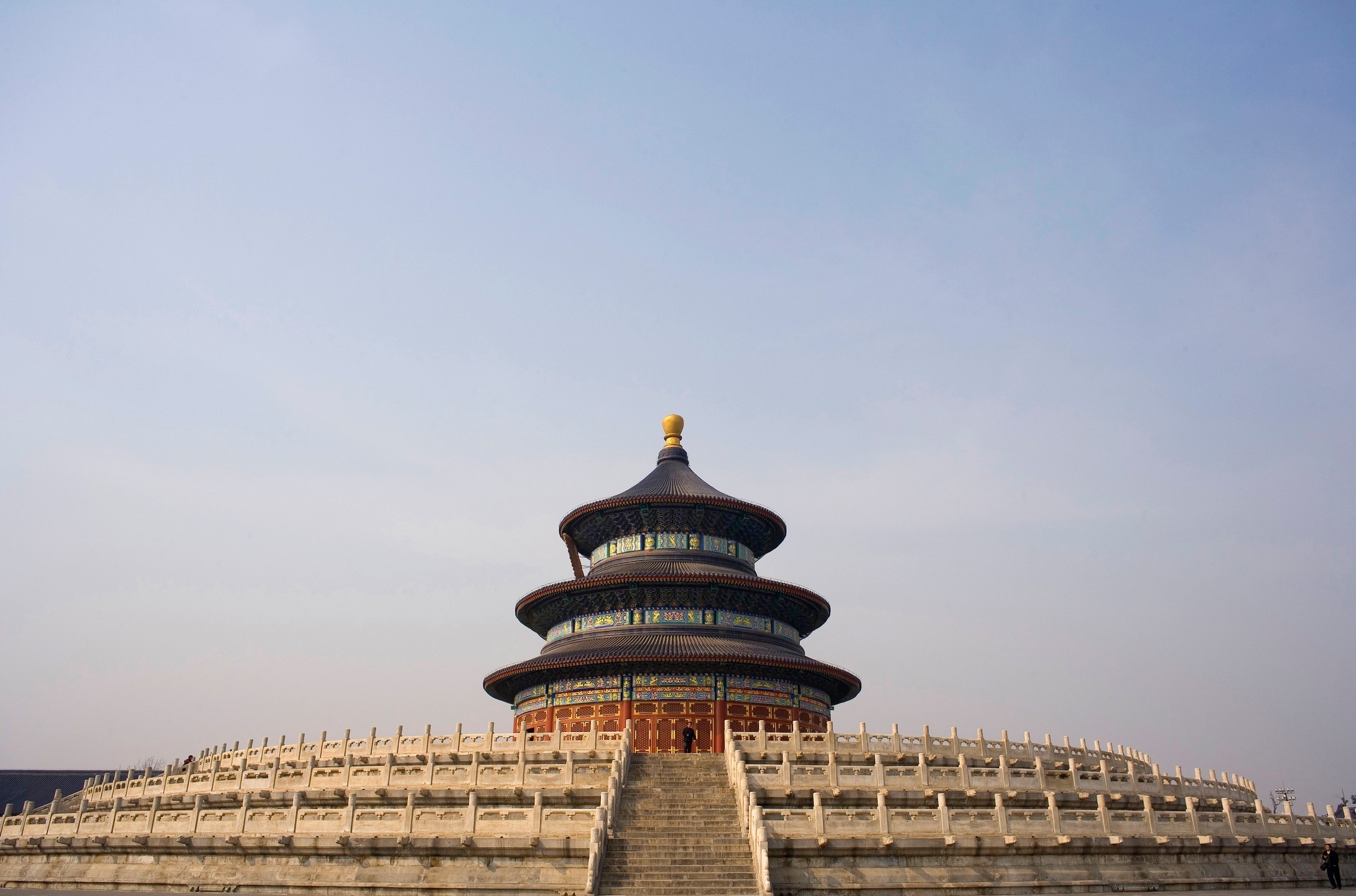 天坛始建于明永乐十八年(1420),是明、清两代皇帝“祭天”“祈谷”的场所,位于正阳门外东侧。坛域北呈圆形,南为方形,寓意“天圆地方”。坛内主要建筑有祈年殿、皇乾殿、圜丘、皇穹宇、斋宫、无梁殿、长廊、双环万寿亭等,还有回音壁、三音石、七星石等名胜古迹。