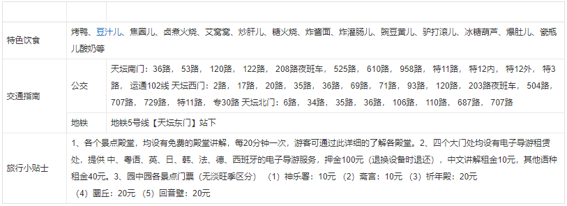 天坛公园,是明清两代皇帝每年祭天和祈祷五谷丰收的地方。天坛以严谨的建筑布局、奇特的建筑构造和瑰丽的建筑装饰著称于世。总占地面积约270万平方米,分为内坛和外坛。主要建筑物在内坛,南有圜丘坛、皇穹宇,北有祈年殿、皇乾殿,由一条贯通南北的甬道--丹陛桥,把这二组建筑连接起来。外坛古柏苍郁,环绕着内坛,使主要建筑群显得更加庄严宏伟。坛内还有巧妙运用声学原理建造的回音壁、三音石、对话石等,充分显示出古代中国建筑工艺的发达水平。天坛公园,是中国保存下来的最大祭坛建筑群。