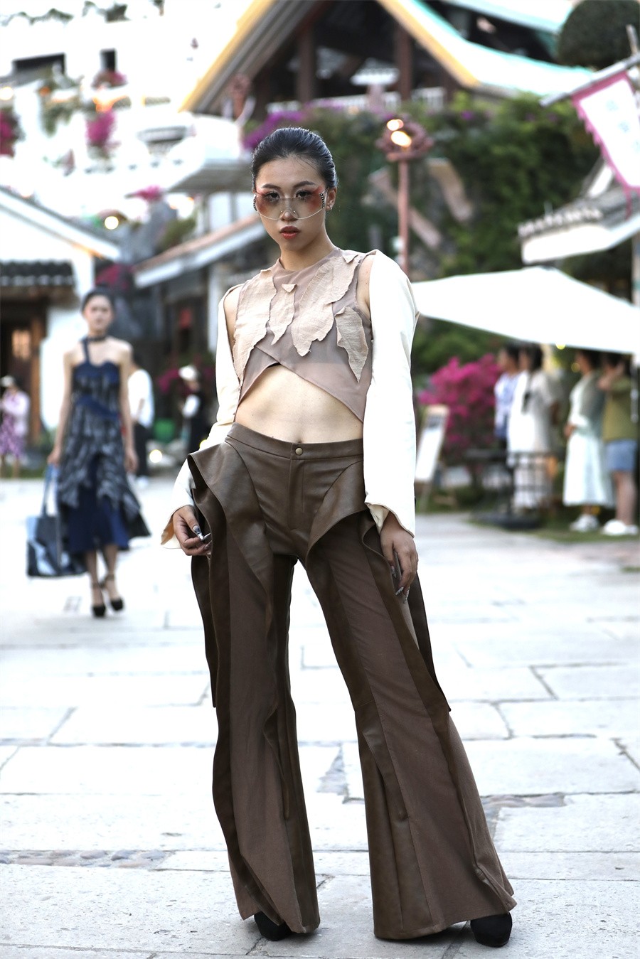 北艺学子在时装秀中快乐自在的状态,展现出了更加自信的美好品质,也展示了学生学习成果。同学们用纷呈各异的艺术设计表现手法,展示出对服装艺术的理解和追求,整个服装作品精彩的走秀展演伴着动听的音乐不断地给海丝首港景区游客带来惊喜和震撼,现场阵阵掌声为同学们的创意喝彩。