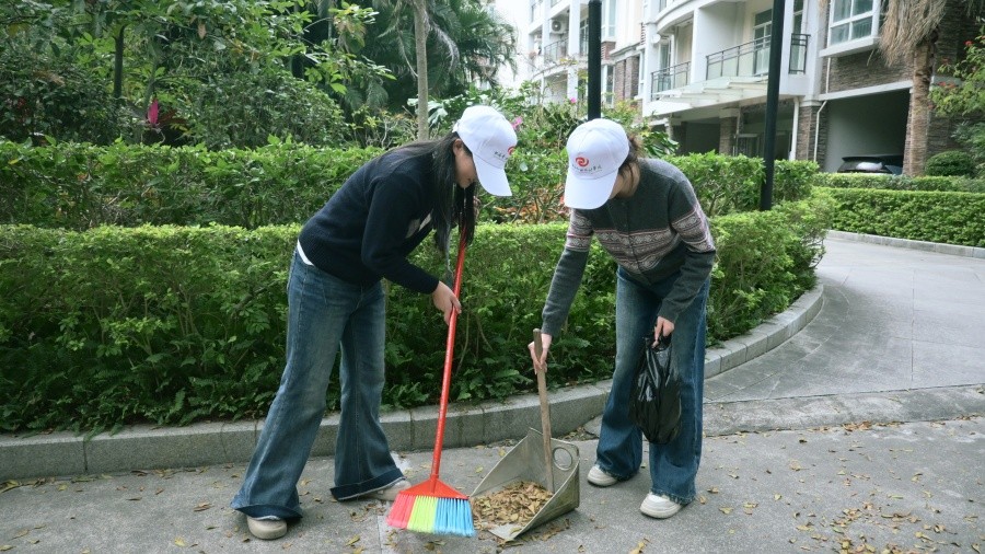 志愿者协助清扫公共区域