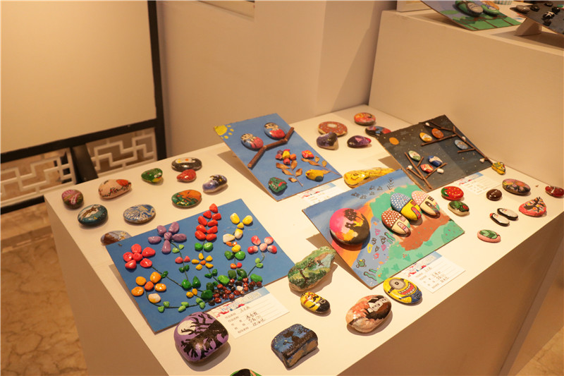 本次展览绘画部分主要包含国画、油画、水彩、儿童黑白画、插画以及顺石造型彩绘等;手工部分主要包括儿童拓印版画、纸浆画、玩偶缝纫制作、超轻黏土手工制作等。另外,还有学生原创的“本土玩偶”和“校园吉祥物”布偶系列设计制作。教育学院成立以来一直秉承“职业导向,德艺双修”的教育模式,始终强调专业建设的学术性、技术性、师范性。而艺术教育、学前教育的“准教师”们也深知未来要肩负的重任。这次的画展也正是基于这样的思考,在凸显学生专业技艺的同时,力图从形式上创新,从手法上丰富,凝聚了各位指导老师和同学们的智慧和心血。