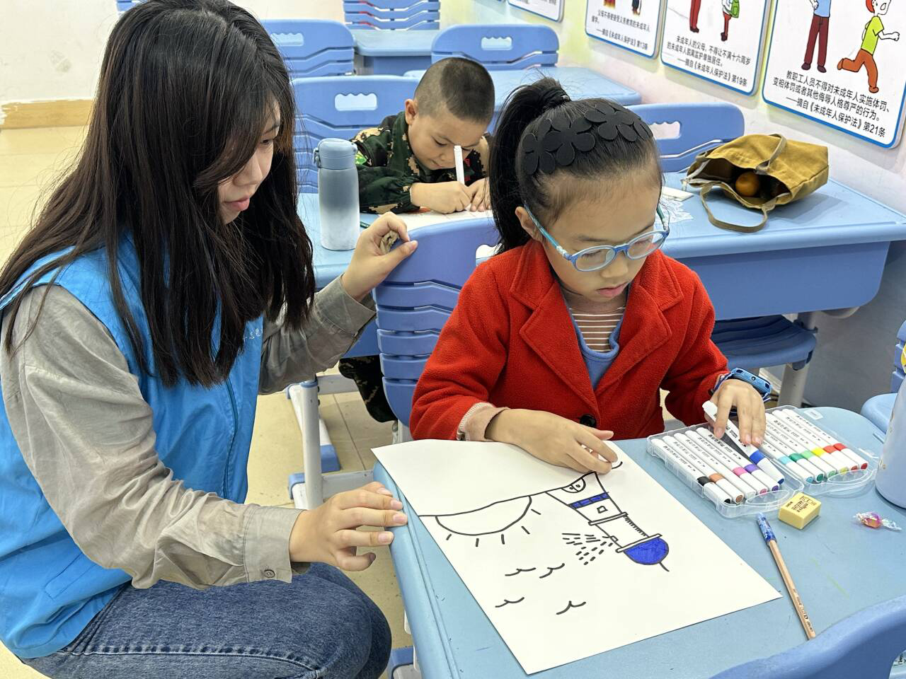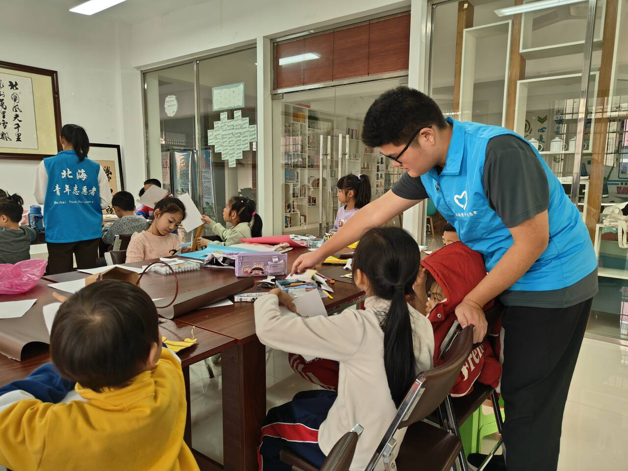 支教,是一份心意,是一种力量,更是一段历练。2023年12月2日,北海艺术设计学院校团委青年志愿者协会的志愿者们来到了北部湾社区、疍家小镇、侨北社区,并进行本周的趣味支教。本周的支教采取了绘画、手工两种形式,激发了孩子们的创意思维,提高了孩子们的创新活力。